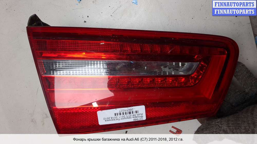 |   | фонарь крышки багажника левый | Audi A6 C7 (2011 - 2018) | 2012; Бензин; TFSi; Седан; ; ; Состояние Отличное. Товар полностью работоспособен. Могут присутствовать незначительные следы эксплуатации, царапины на лакокрасочном покрытии, а также следы снятия/установки.