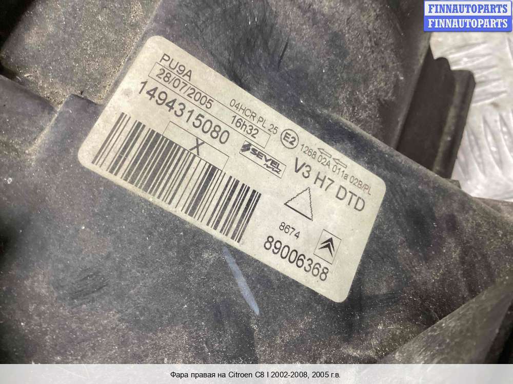 Компания FINNAUTOPARTS занимается продажей контрактных (б/у, бывших в употреблении) запчастей для иномарок. В нашей компании продаются только оригинальные запчасти из Европы, Японии и Кореи, которые не имеют пробега по РФ. Если вы хотите приобрести фару переднюю (правая) для а/м Ситроен С8, смело обращайтесь в нашу компанию. Все наши менеджеры — профессионалы своего дела, и с удовольствием помогут вам купить запчасти, в том числе, передние фары правые, на Citroen C8 и другие автомобили.